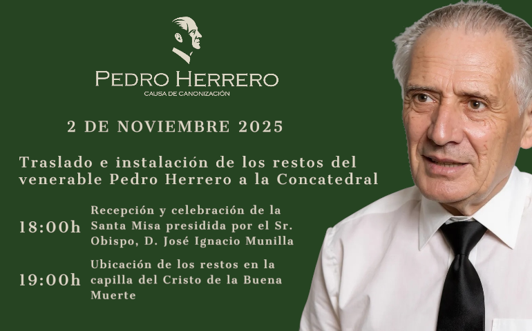 El próximo domingo 2 de noviembre de 2025, a las 18:00h., tendrá lugar en la Concatedral de San Nicolás la solemne ceremonia, un momento histórico, presidida por nuestro obispo diocesano, D. José Ignacio Munilla, de la instalación de los restos mortales del Venerable Pedro Herrero en la Capilla de la Buena Muerte