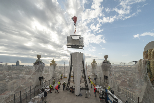Llegan las dos piezas que conforman el núcleo de la cruz de la torre de Jesucristo de la Sagrada Familia