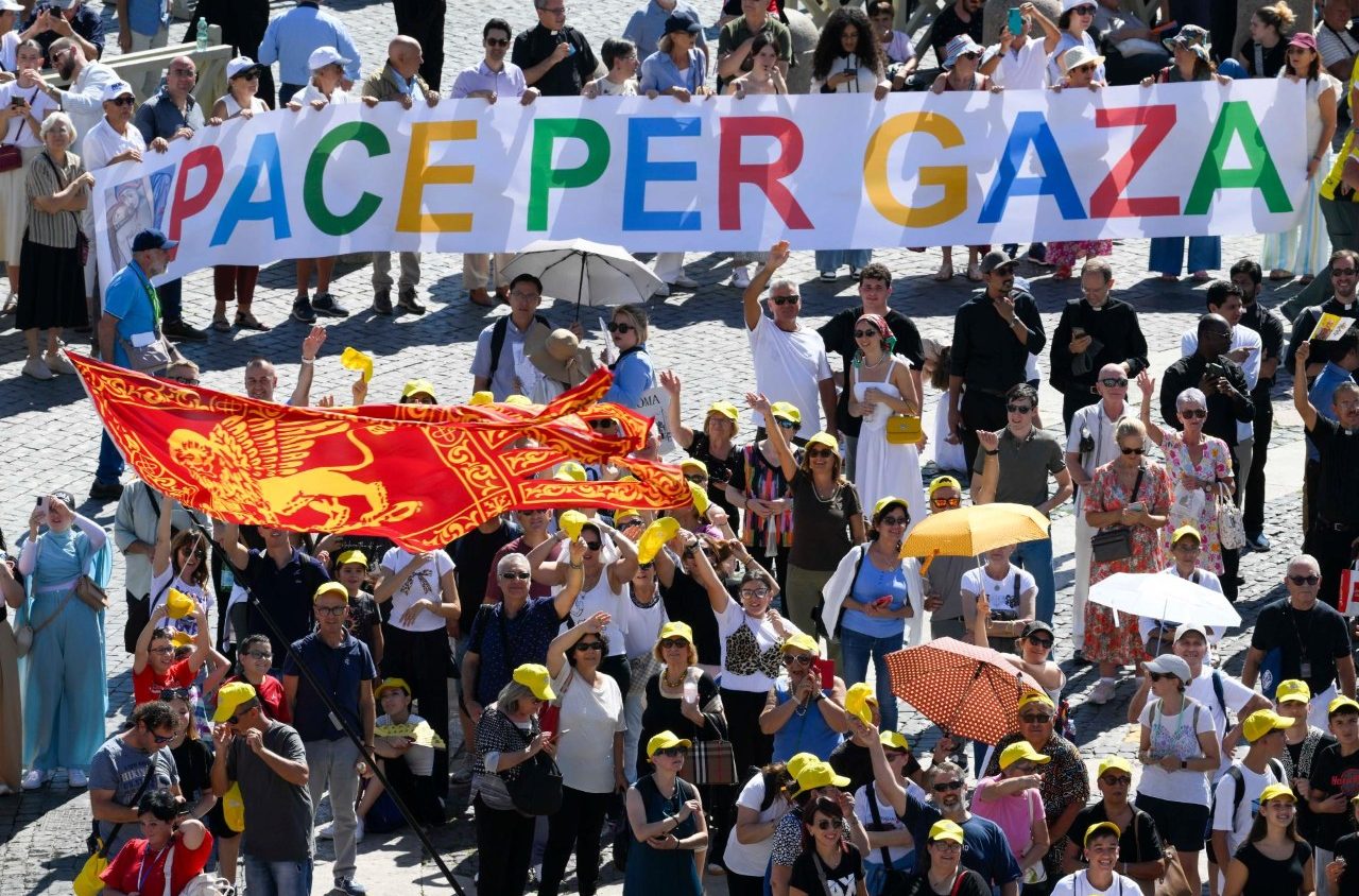 Agradeció a las asociaciones católicas presentes en la Plaza de San Pedro por su solidaridad con la población de Gaza, destacando iniciativas como la vigilia de oración por la paz organizada por la Comunidad de Sant’Egidio y otras asociaciones para el 22 de septiembre en Roma, presidida por el cardenal Gualtiero Bassetti y con conexión con el cardenal Pierbattista Pizzaballa, patriarca de Jerusalén.